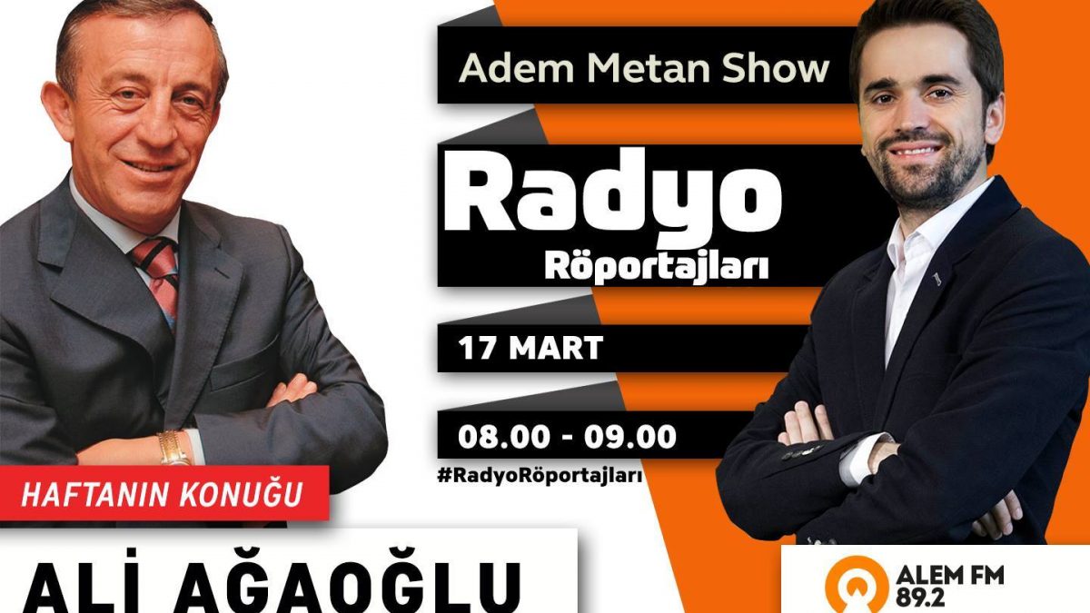 Radyo Röportajları köşesinde birbirinden kıymetli isimleri Adem Metan Show programında ağırlayan başarılı programcı 17 Mart Perşembe günü 08:00 – 09:00 saatleri arasında Ali Ağaoğlu’nu konuk edecek.