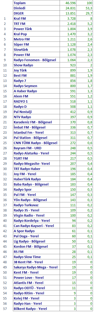 Türkiye genelinde en çok hangi radyoların ve radyo programlarının dinlendiğini sorgulayan araştırmanın sonuçlarını Radyocular.com olarak sizlerle paylaşıyoruz.