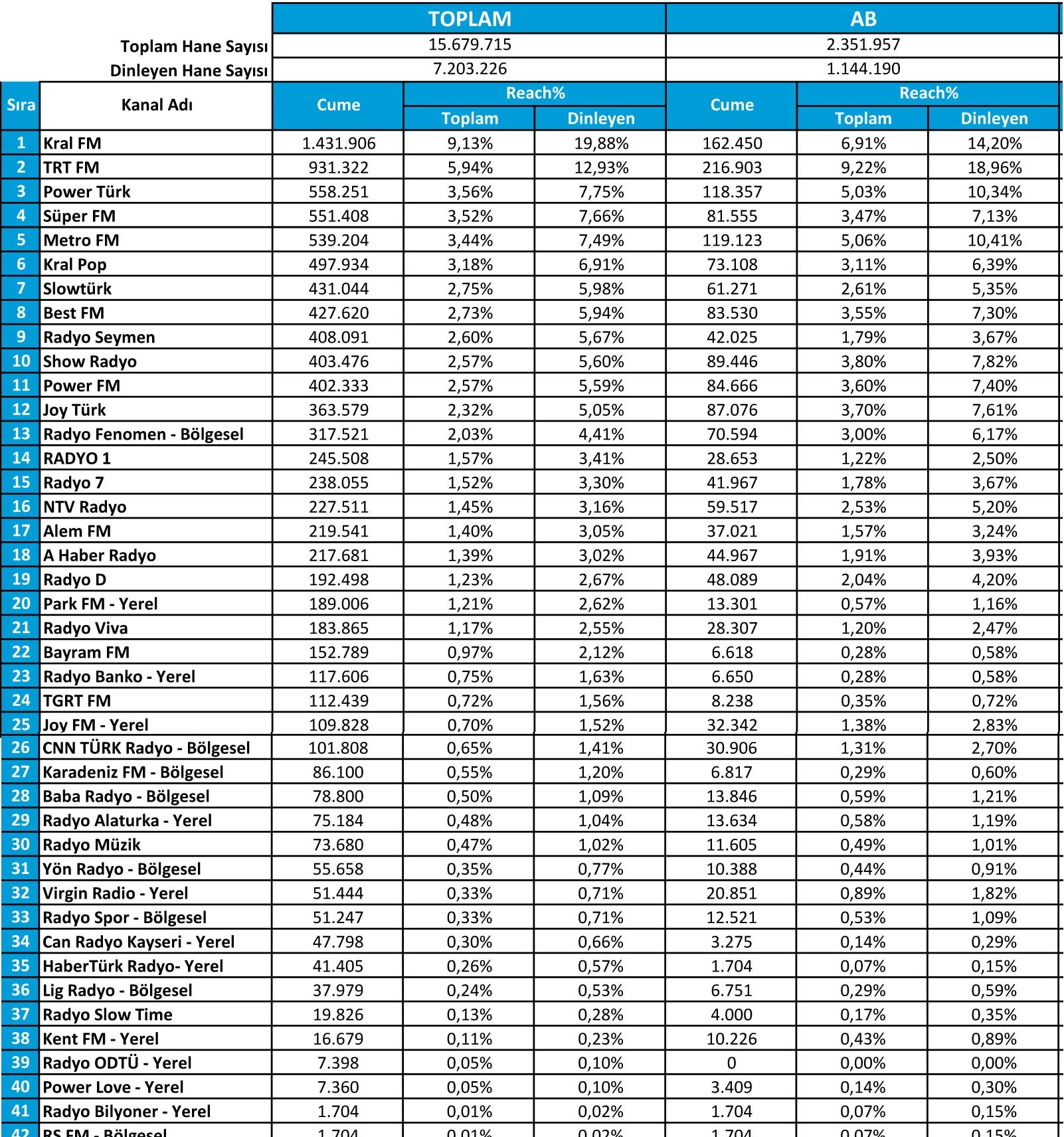 Türkiye genelinde en çok hangi radyoların ve radyo programlarının dinlendiğini sorgulayan araştırmanın sonuçlarını Radyocular.com olarak sizlerle paylaşıyoruz.