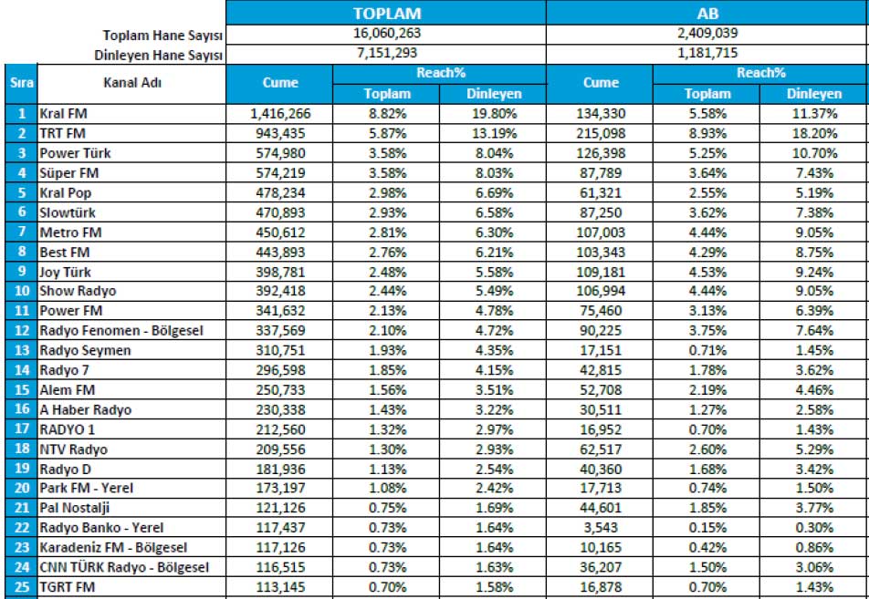 Türkiye genelinde en çok hangi radyoların ve radyo programlarının dinlendiğini sorgulayan araştırmanın sonuçlarını Radyocular.com olarak sizlerle paylaşıyoruz.