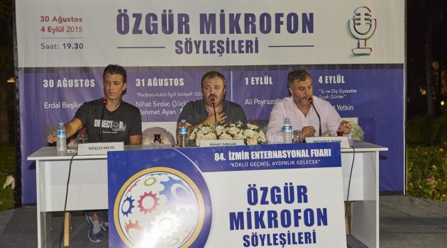 İzmir Büyükşehir Belediyesi ev sahipliğinde İZFAŞ tarafından düzenlenen 84. İzmir Enternasyonal Fuarı devam ediyor. Türkiye’nin ilk uluslararası fuarı olma özelliğini taşıyan İzmir Enternasyonal Fuarı, 84. yaşında birbirinden değerli konukları ağırlıyor. Kalemin ustaları, sanatın ve basının emekçileri, beyaz ekranın renkli isimleri 84. İEF’de buluşuyor. Fuar etkinlikleri kapsamında Kültürpark İzmir Sanat bahçesinde gerçekleştirilen ‘Özgür Mikrofon Söyleşileri’nin konuğu, Show Radyo Program Yapımcısı Nihat Sırdar,Show Radyo Program Sunucusu Güçlü Mete ile Gazeteci –Yazar, Radyo ProgramcısıMehmet Ayan oldu. “Radyoculukla İlgili İstikşafi Görüşmeler” başlıklı söyleşi ise büyük ilgi gördü.