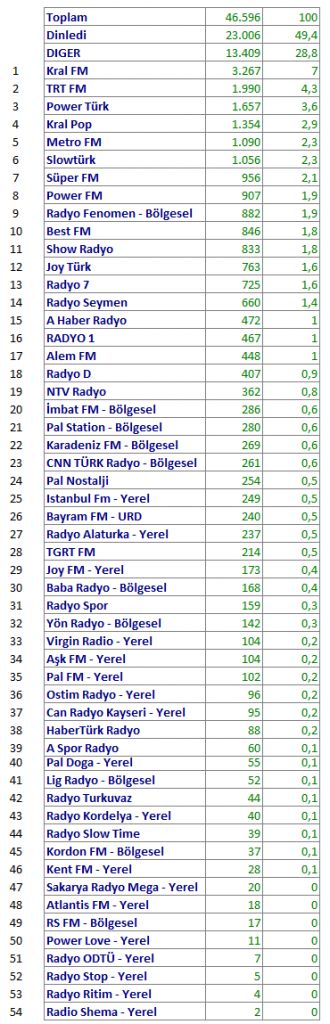 Türkiye genelinde en çok hangi radyoların ve radyo programlarının dinlendiğini sorgulayan araştırmanın sonuçlarını Radyocular.com olarak sizlerle paylaşıyoruz.