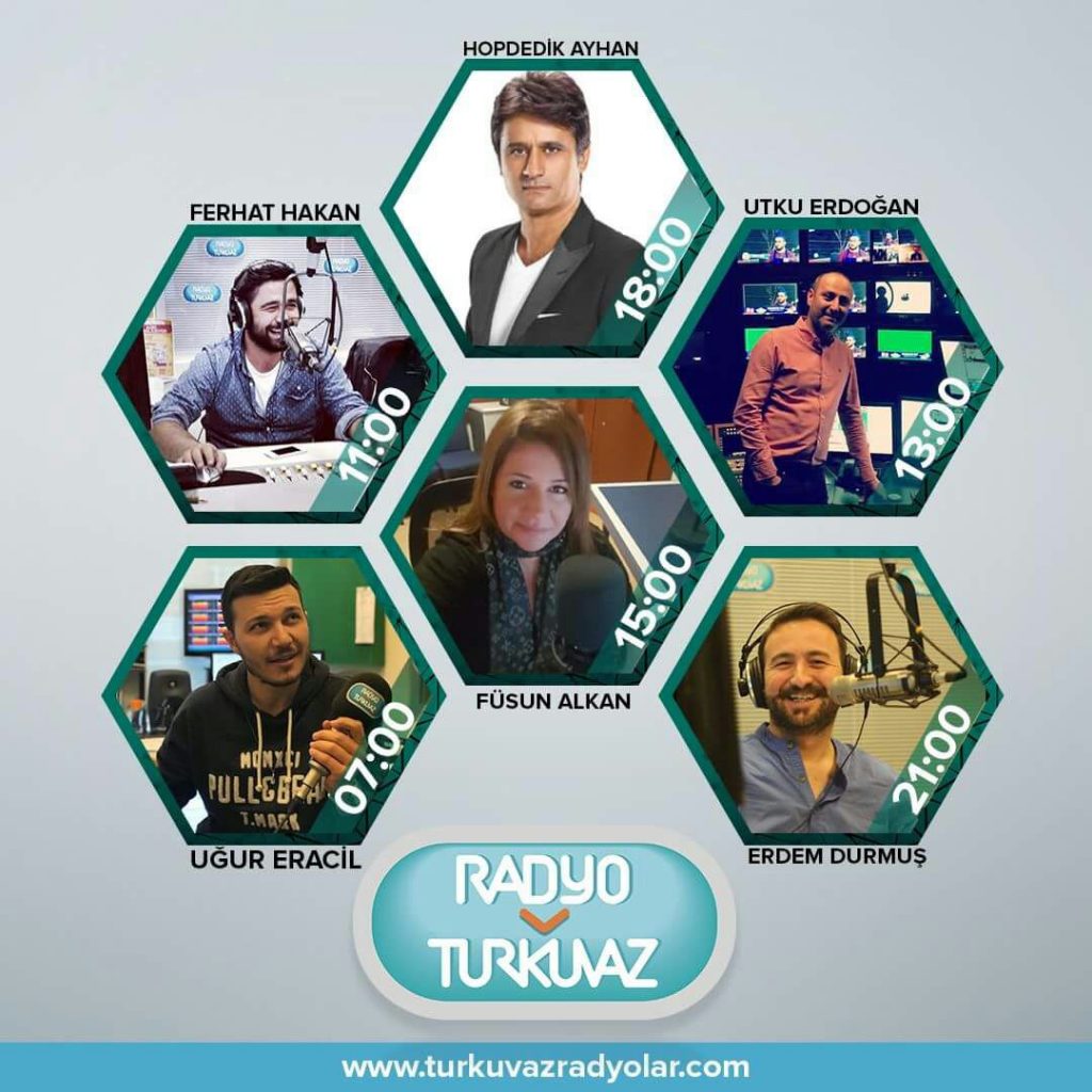 1 Ocak 2018’de canlı yayınlara başlayan Radyo Turkuvaz’da program yapan radyocular sosyal medya hesabından yayın saatleriyle beraber paylaşıldı.