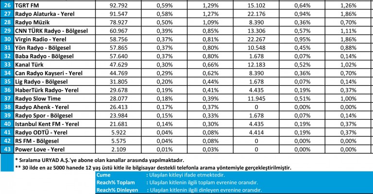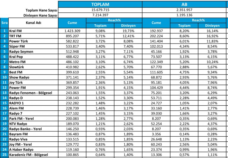 Türkiye genelinde en çok hangi radyoların ve radyo programlarının dinlendiğini sorgulayan araştırmanın sonuçlarını Radyocular.com olarak sizlerle paylaşıyoruz.