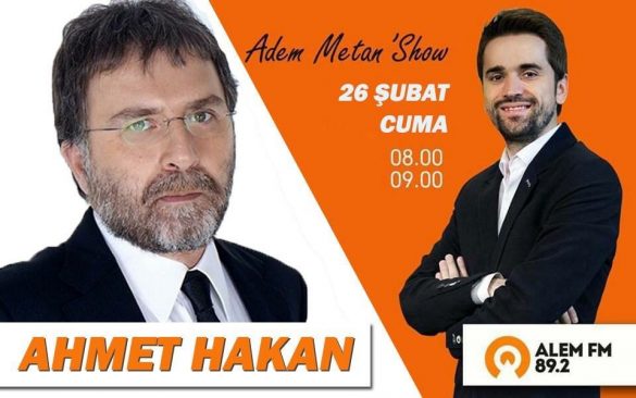 Alem FM’in sabah programları arasında fark yaratan programcısı Adem Metan, bu hafta Ahmet Hakan’ı konuk ediyor. Bu zamana kadar aldığı konuklarla adından sıkça söz ettiren deneyimli programcı Adem Metan, 26 Şubat Cuma günü 08:00 – 09:00 arası Ahmet Hakan’ı konuk edecek. Sosyal medya üzerinden dinleyenlerden...