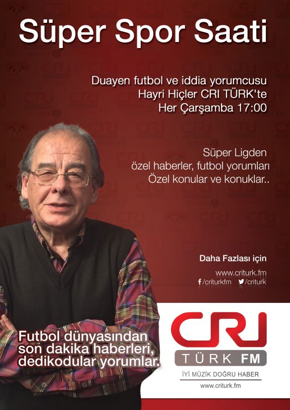 Televizyon ve basının ünlü spor yorumcusu Hayri Hiçler, CRI Türk FM ile anlaştı. Hayri Hiçler, Süper Spor Saati programıyla her Çarşamba mikrofon başına geçmeye hazırlanıyor. İlgi çekici futbol yorumları ve iddaa tahminleri ile yıllarca bir çok radyoda spor programı yapan Hiçler, buu haftadan itibaren gündem...